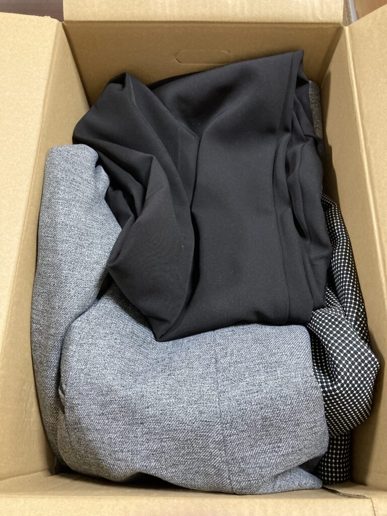 基本的に衣類はダンボールなどの空き箱か袋などに入れての発送となります。